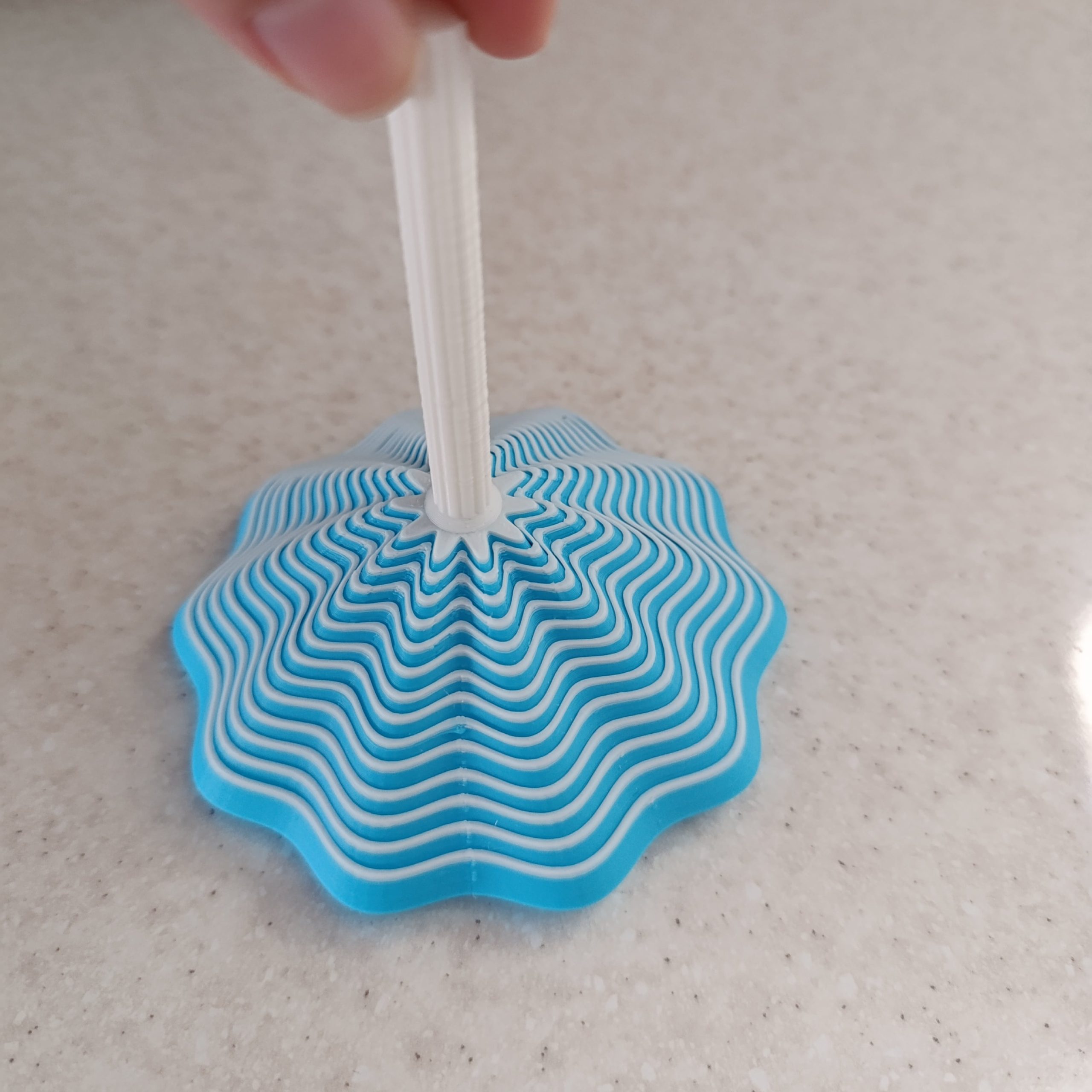 این فیجت از چندین لایهی سبک و مقاوم ساخته شده که روی یک محور مرکزی قرار دارند. طراحی مارپیچی و موجی لایهها، هنگام حرکت، جلوهای بصری ایجاد میکند که باعث آرامش ذهنی و کاهش تنش میشود. در نتیجه، این فیجت برای استفاده در محیط کار، دانشگاه، مدرسه، مطالعه و حتی هنگام استراحت بسیار مناسب است. یکی از مهمترین مزایای این محصول، بهبود تمرکز در موقعیتهای پرتنش است. بسیاری از کاربران فیجتها گزارش دادهاند که با حرکت دادن منظم یک فیجت کوچک، ذهنشان بهتر میتواند روی فعالیت اصلی متمرکز شود.