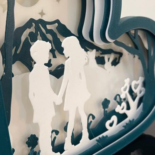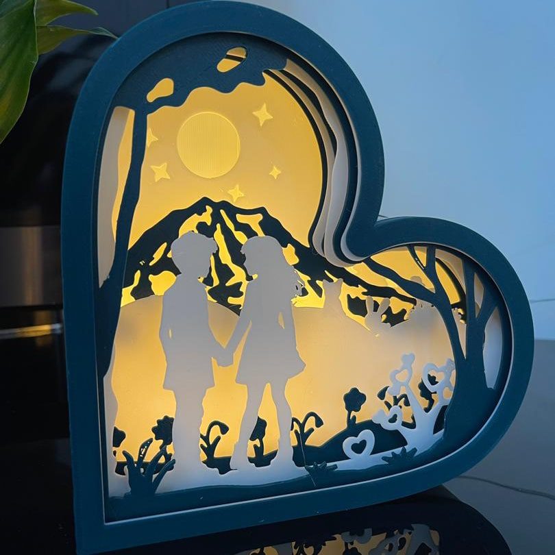در این چراغ خواب چند لایه، هر لایه با دقت بالا توسط پرینتر سهبعدی تولید شده تا جلوهای واقعی و عمیق ایجاد کند. نور ملایم LED بین لایهها عبور کرده و ترکیبی از نور، سایه و احساس میسازد که روح فضا را دگرگون میکند. حاصل کار، اثری چشمنواز و دلانگیز است که در هر زاویه، چهرهای جدید از عشق را نشان میدهد.