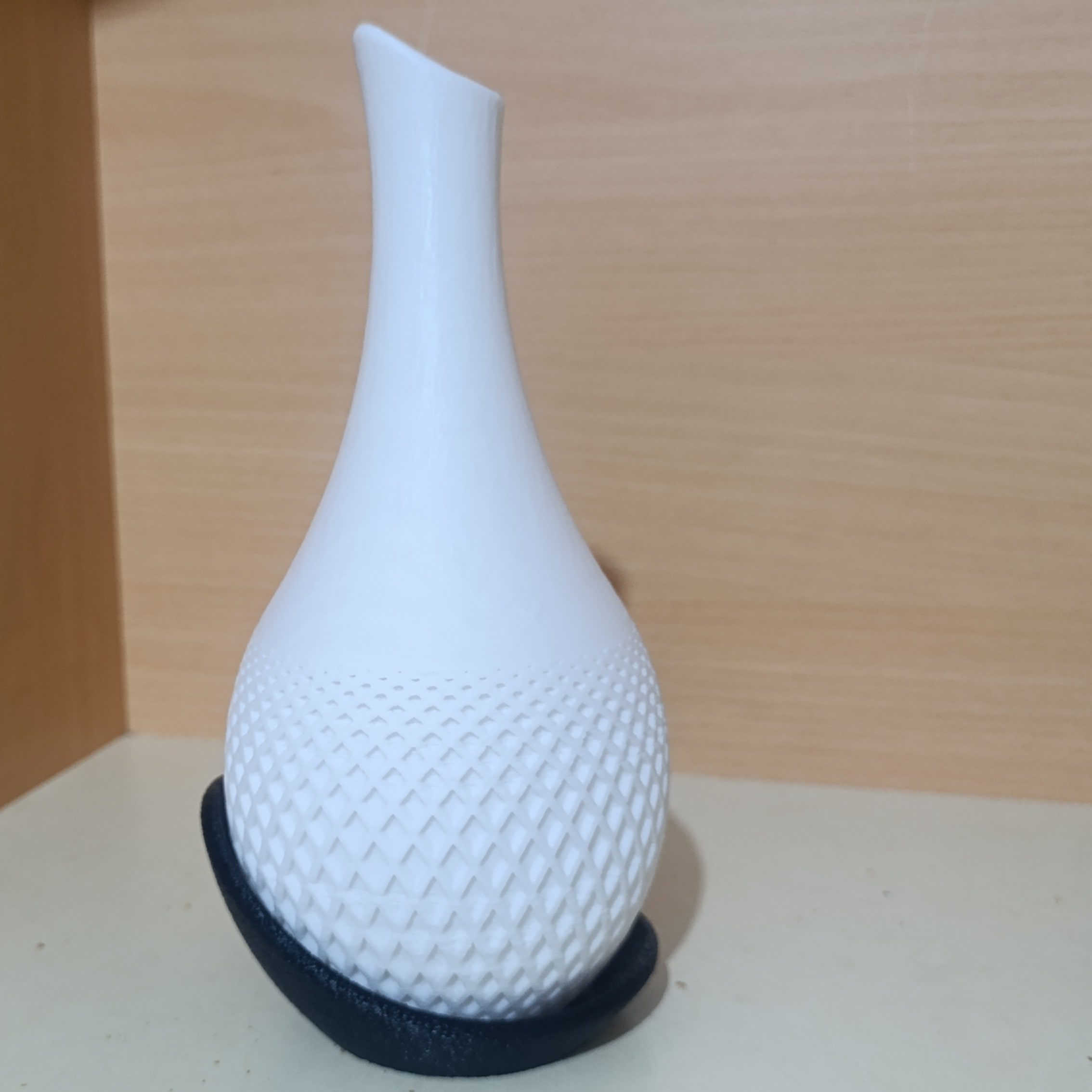 این گلدان با پرینتر سه‌بعدی و با دقت بالا تولید شده است. به همین دلیل، جزئیات طراحی به‌خوبی نمایان بوده و سطحی یکنواخت و جذاب دارد. ارتفاع گلدان ۲۰ سانتی‌متر و قطر پهن‌ترین بخش آن ۱۱ سانتی‌متر است؛ ابعادی ایده‌آل برای قرار گرفتن روی میز، شلف، کنسول و در کنار دکورهای دیگر.